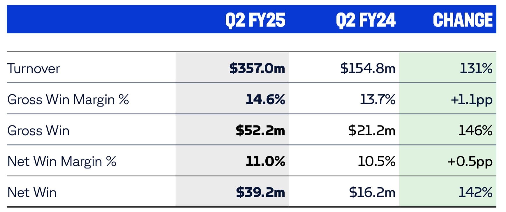 “This highlights the strength of our offering and the ongoing opportunity in front of us as we continue to expand our customer base organically and through the strategic reactivation of betr customers, including into Q3 with the autumn racing carnival and football seasons.”