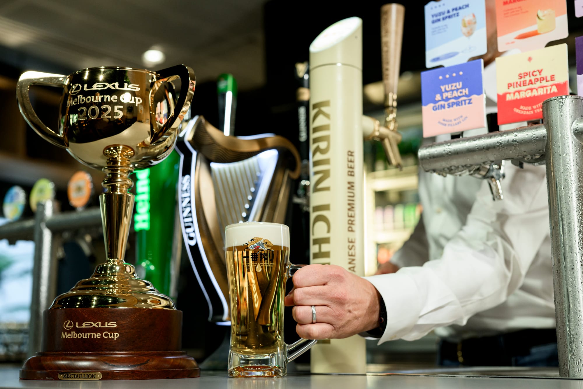 Kirin Ichiban will be featured in a new Japanese-themed marquee during the Melbourne Cup carnival in the Birdcage Enclosure, while the Kirin Ichiban First Press Pavillion will take over the former Furphy Deck near the Winning Post.