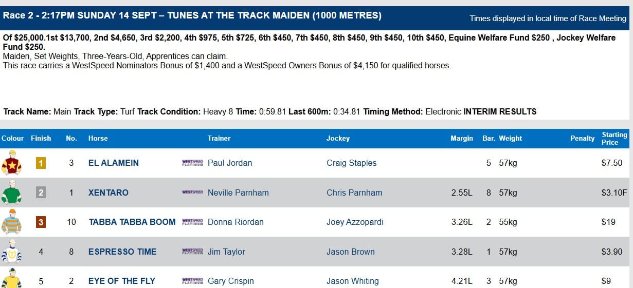 "While the official result has changed under industry rules, WA TAB will continue to settle bets on correct weight."