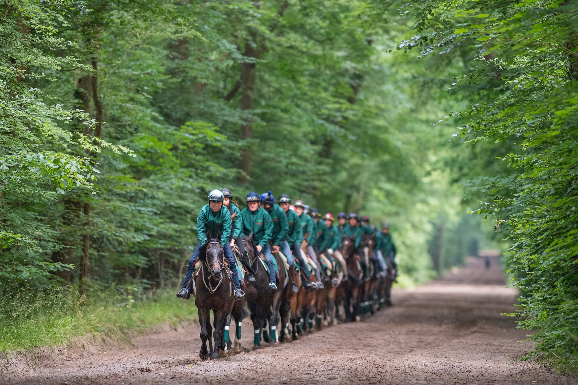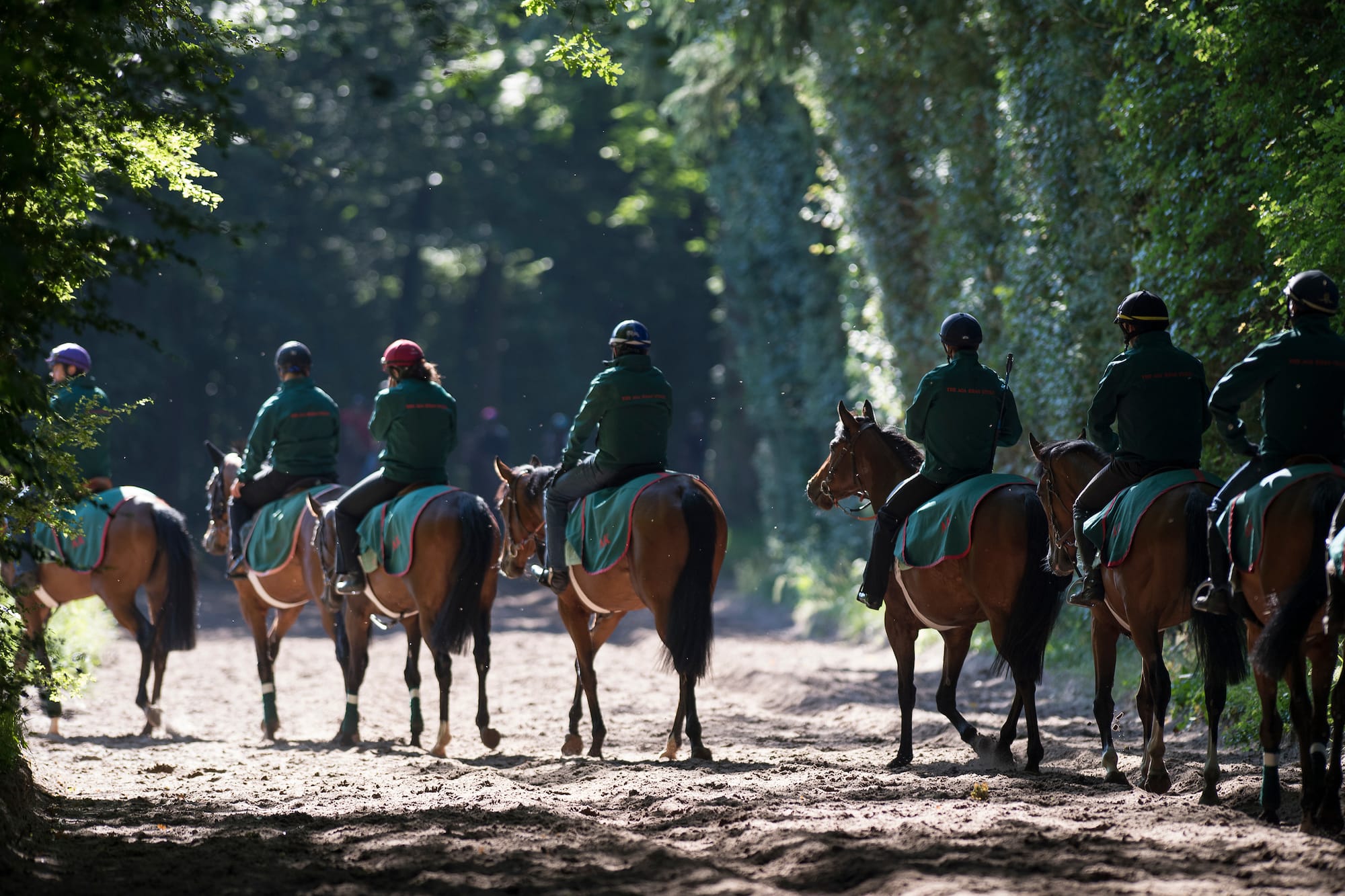 The Aga Khan's racing team in morning trackwork at Chantilly. (Photo: Bronwen Healy - The Image is Everything)