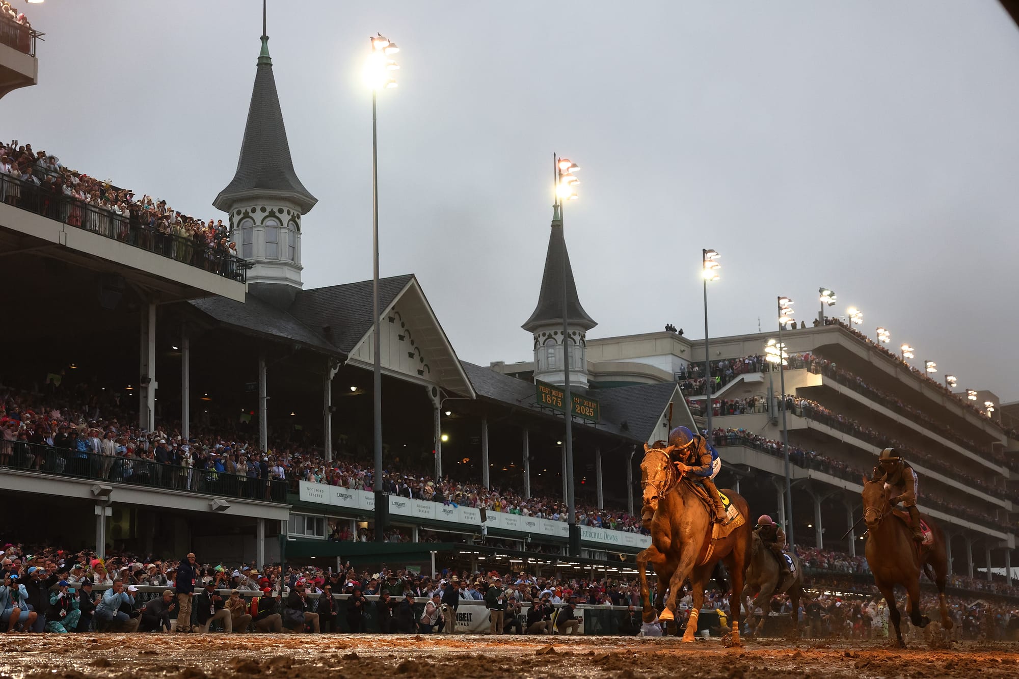 In what was a rainy 151st edition of the famous race, the Bill Mott-trained Godolphin colt Sovereignty saluted in front of a crowd of 147,406, down from 156,710 last year.