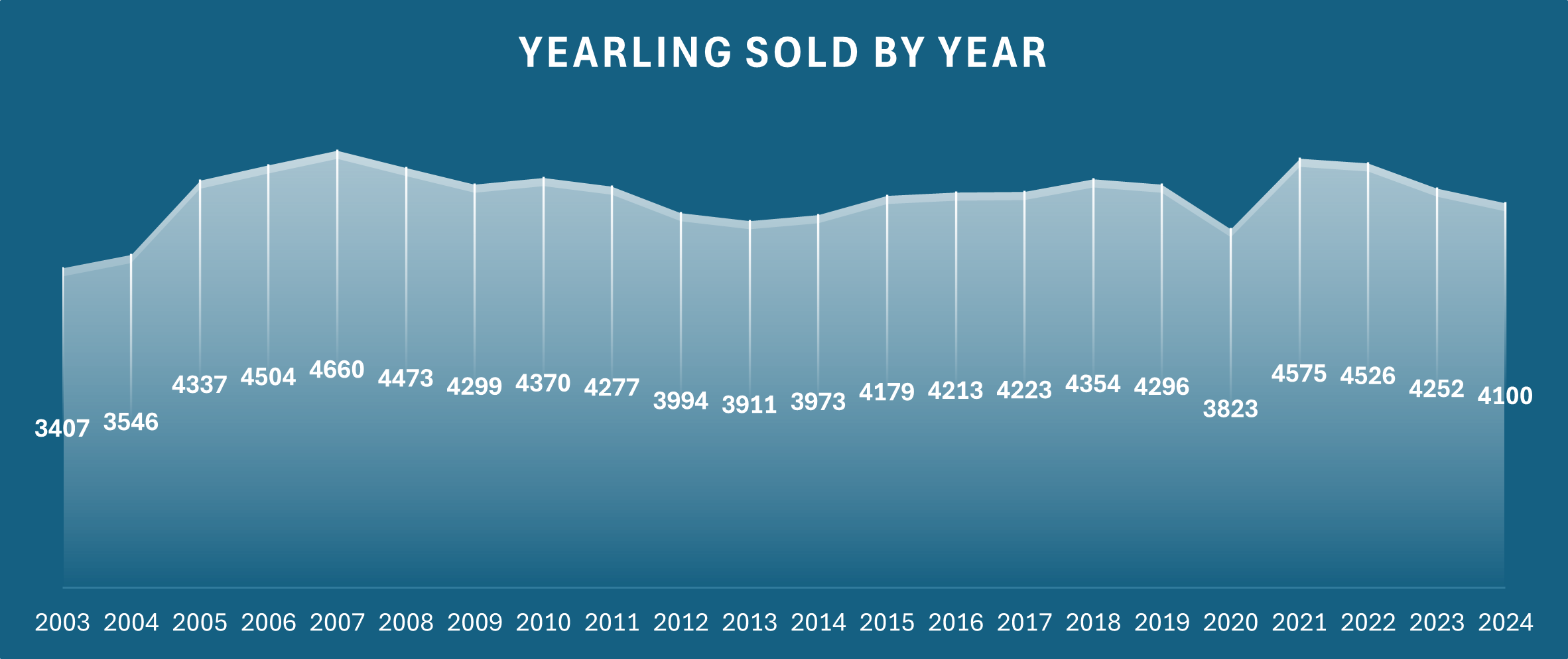 The simple expression of the above is that the market purchased fewer yearlings this year, 4100, than it has in any season since that 2014 season. The number of yearlings purchased was 152 down on 2023 and 475 fewer, or 10.4 per cent, than when it peaked in 2021 at 4575.