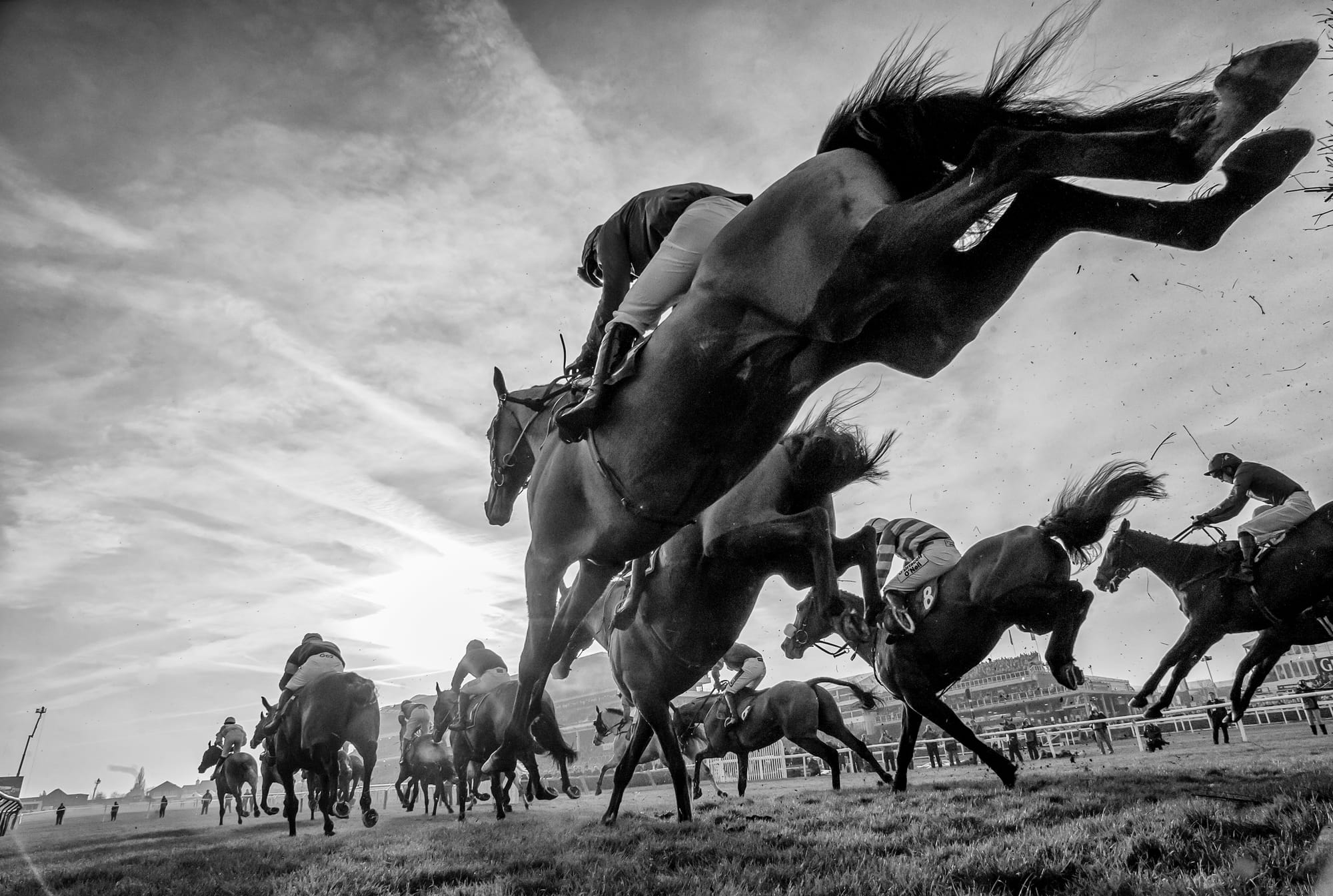 Cheltenham is “Disneyland” for Horse Racing photographers, so many jumps, and so much scope for unique imagery. I set up a remote just near this jump in the home straight, hoping for as many horses in the frame as possible and it turned out to be one of my favourite jumps racing photos I’ve taken.